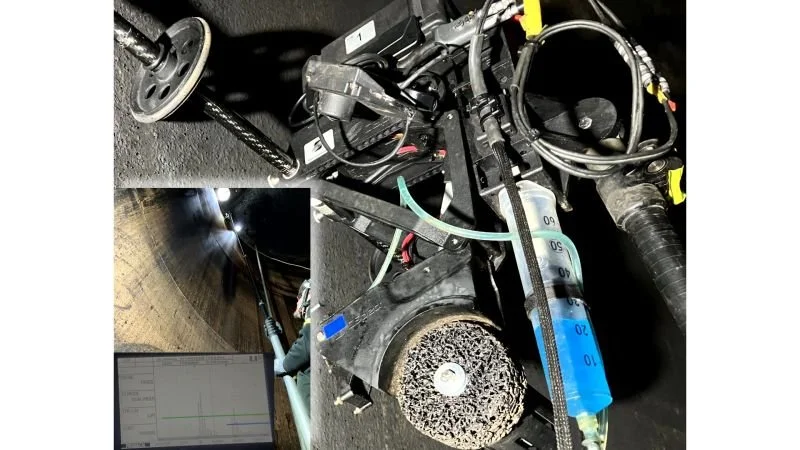 For Oleon NV, we deployed our patented ALTUM® system to inspect a heavily fouled tank. Utilizing the Crawler Mode, featuring a powerful integrated grinder, we quickly removed thick layers of rust and dirt from hard-to-reach surfaces. This robust technology effortlessly penetrates industrial debris to deliver precise UTM measurements, ensuring maximum efficiency and safety.